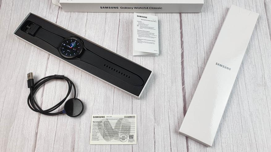 Внутри, кроме часов, можно обнаружить: беспроводную зарядку, небольшой мануал по первоначальному запуску и гарантийный талон.