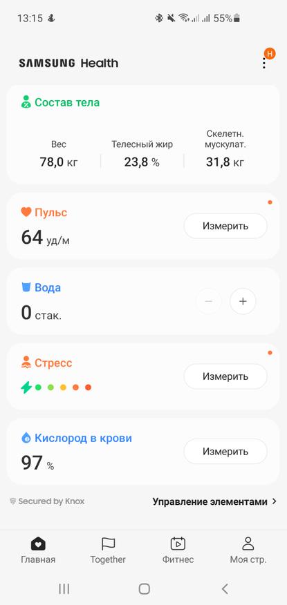 Для удобства, сражу буду показывать эти же возможности с приложения Samsung Health, куда отправляется все собранные показатели.