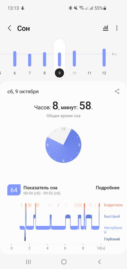 Не менее интересным является анализ показателей сна, для чего часы во время сна должны оставаться на руке. Девайс точно определяет время вашего сна и выставляет ему оценку.