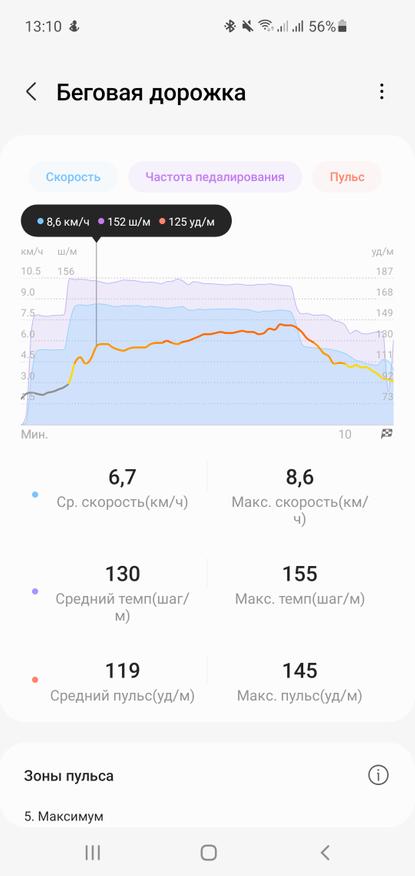 Отдельно есть измерение пульса, кардиограмма, измерение уровня стресса и измерение артериального давления. Последний пункт пока в Украине не доступен, поэтому о точности ничего сказать не могу. Но в любом случае, давление измеряется при помощи PPG датчика, а значит и результат нельзя считать полностью достоверным, ведь сосуды у всех разные. Хотя многие пользователи отмечают, что после калибровки часы показывают значения очень близкие к реальным. Я же могу говорить только за точность измерения пульса, которую сравнивал с медицинским тонометром и встроенным пульсометром беговой дорожки — показания полностью совпадают.