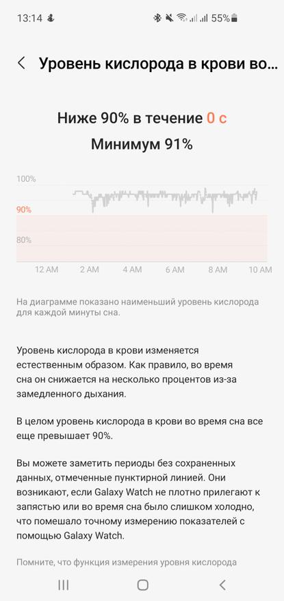 Samsung улучшила показатели отслеживания сна для своих последних умных часов. Кислород крови измеряется раз в минуту в течение ночи на Galaxy Watch 4 по сравнению с раз в 30 минут на Galaxy Watch 3. Больше показаний SpO2 может означать более глубокое понимание качества отдыха, особенно для людей с такими состояниями, как апноэ во сне. Когда вы спите рядом с совместимым смартфоном, отслеживаются и звуки вашего храпа.